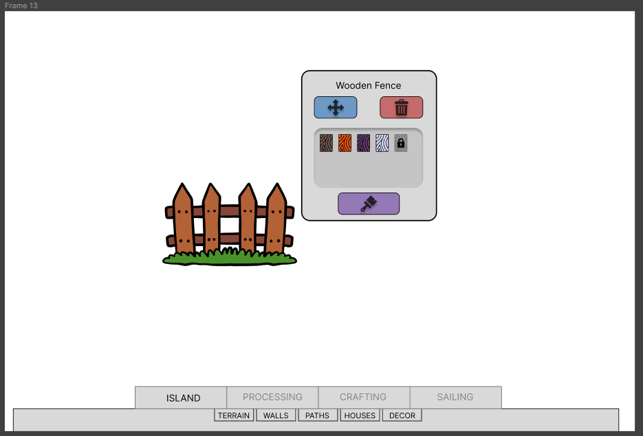 I worked directly with our Technical Artist to create a building system that would update based on placement, and in order to allow players more freedom to customise, placed decorations seperately.