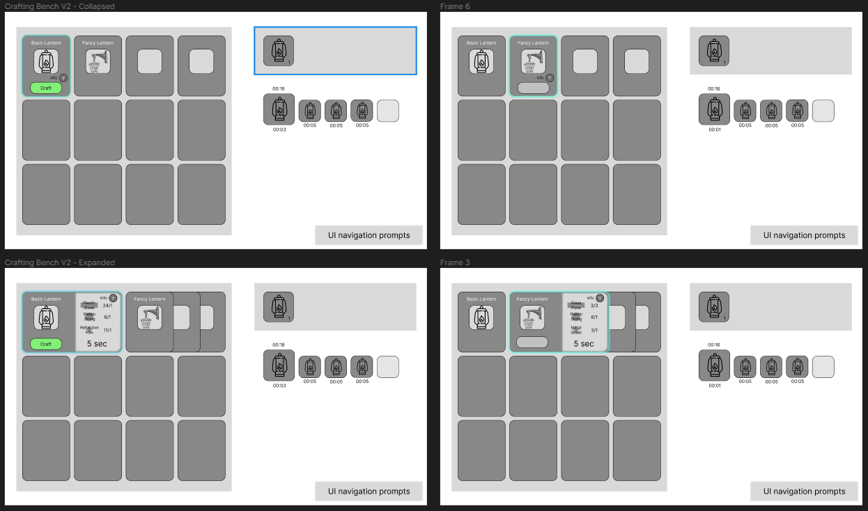 Sailforge had a crafting menu that had to show items, recipes, and the stack of things being crafted.
